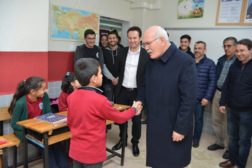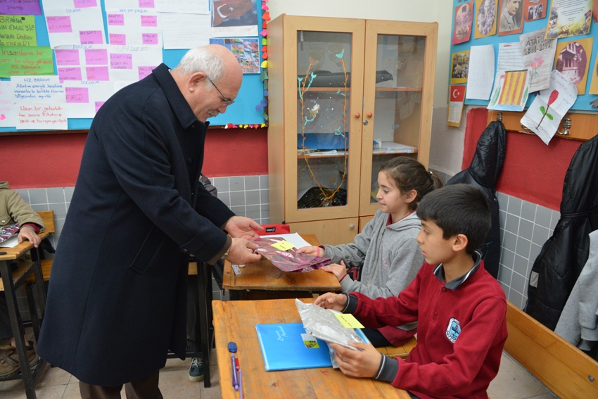 Kütüphane açılışının ardından Prof. Dr. Savaş, öğrencilere hediyeler vererek onlarla bir süre sohbet etti.