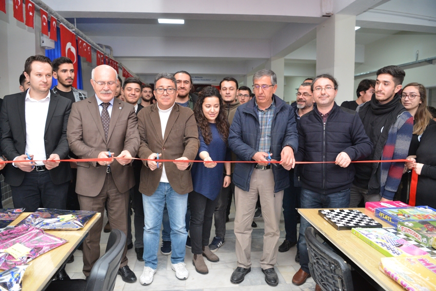 İlyaslı Ortaokulunda kurulan kütüphanenin açılışına katılan Rektör Prof. Dr. Ekrem Savaş, öğrencilerin okulu boyanmasına yardım etti. Prof. Dr. Savaş, üniversite topluluklarının bu tip sosyal sorumluluk projelerinde yer almasından dolayı mutlu ve gururlu olduklarını belirterek, “5. Engelsiz Sanat Ödülleri düzenleyicisi Yön Sanat Atölyesi Temsilcisi ve Tiyatro Yönetmeni Erdem Öksüz’ü, Sosyal Hizmet Topluluğu Danışmanı Dr. Öğr. Üyesi Muhammet Ali Köroğlu’nu, Topluluk Başkanı İbrahim Kan’ı ve öğrencileri sergiledikleri örnek davranıştan dolayı tebrik ediyorum. Yaklaşık 3 bin 500 kitap toplanmış ve kütüphanede yerini almış. Kitap okumak çok önemli. Kütüphane, geleceğin güvencesi olan çocuklarımızı okumaya sevk edecek, onların ufuklarını açacak. Ayrıca İlyaslı Ortaokulunda açılan kütüphaneye ismimin verilmesi beni hem duygulandırdı hem de gururlandırdı. Emeği geçen herkese teşekkür ediyorum.”dedi.