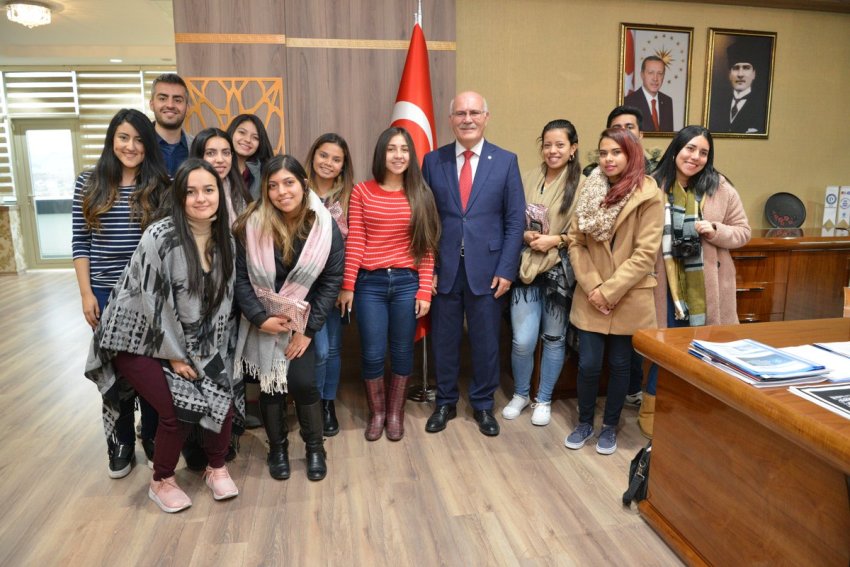 Anadolu Üniversitesi ile Kolombiya Externado Üniversitesi arasında “Öğrenci Değişim Projesi” kapsamında imzalanan protokol anlaşması çerçevesinde, Şafak Öncü Koleji’ne programa katılan Kolombiyalı öğrenciler, Rektör Prof. Dr. Ekrem Savaş’ı makamında ziyaret etti.