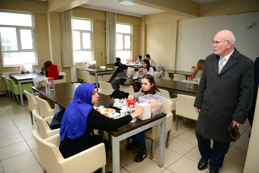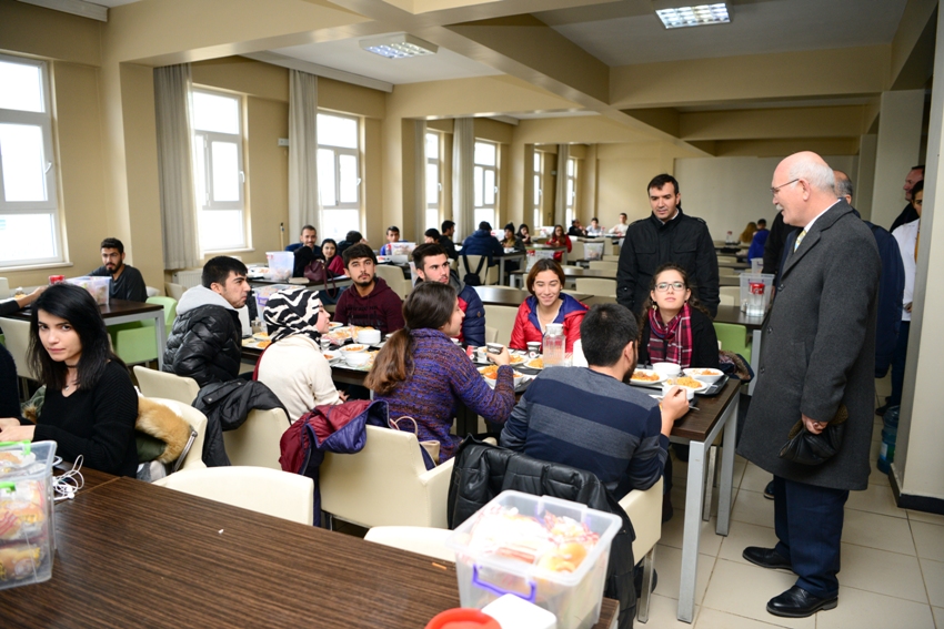 Rektörümüz Prof. Dr. Ekrem Savaş, üniversitemiz öğrenci yemekhanesini ziyaret ederek öğrencilerle yemek yedi.
