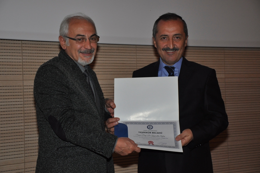 Konferans, TÖMER Müdürü Dr. Öğr. Üyesi Salih Gülerer’in, Prof. Dr. Gıyasettin Aytaş’a üniversite adına teşekkür belgesi vermesi ile son buldu.