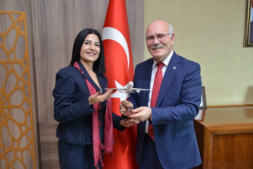 Konferans öncesi Öğr. Gör. Ayşe Arıkan ve Öğr. Gör. Yılmaz Gür, Rektör Prof. Dr. Ekrem Savaş’ı makamında ziyaret ederek uçak maketi hediye etti. Prof. Dr. Savaş, konferansa katılımlarından ve nezaket ziyaretlerinden duyduğu memnuniyeti dile getirdi.