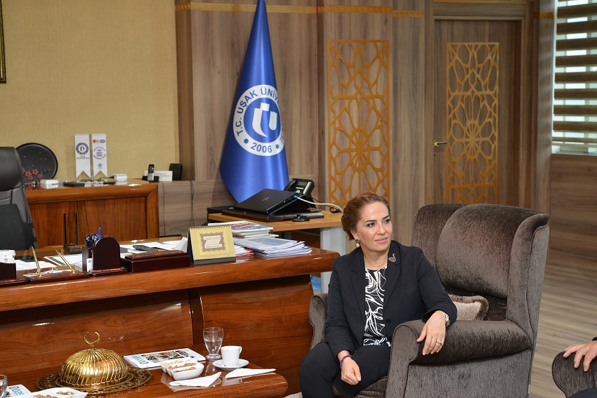 Uşak Valisi Funda Kocabıyık, Rektör Prof. Dr. Ekrem Savaş’ı makamında ziyaret etti.