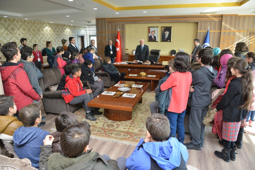 Öğrencileri makamında ağırlayan Prof. Dr. Savaş, öğrencilere tavsiyelerde bulunarak, soruları cevapladı. Kitap okumanın önemine dikkat çeken Prof. Dr. Savaş “Sizler ülkemizin geleceğisiniz. Çok çalışın, başarı kesinlikle sizin olacaktır. Size tavsiyem çok kitap okuyun. Ayrıca teknoloji bağımlılığına ve sosyal medyaya karşı dikkatli olun. Teknolojiyi, doğru amaçlar için kullanın.”dedi.