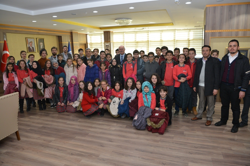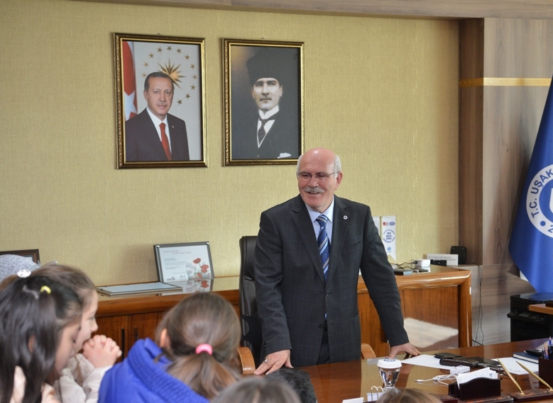Uşak Merkez Şehit Mehmet Çetin İmam Hatip Ortaokulu öğrencileri, Rektör Prof. Dr. Ekrem Savaş’ı ziyaret etti.