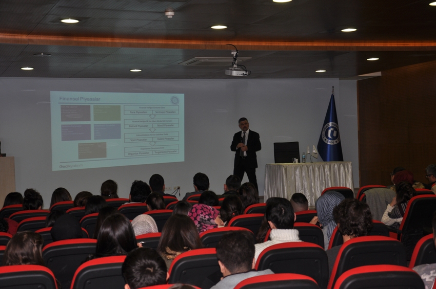Fen Edebiyat Fakültesi Sibel Hişmanoğlu Konferans Salonunda yapılan etkinlikte İstanbul Gedik Yatırım AŞ Yatırım Uzmanı Mesut Kurt, ‘Aracı Kurumların Sermaye Piyasasındaki Rolleri ve Kariyer Fırsatları' adlı sunumunu gerçekleştirerek öğrencilerin sorularını cevapladı.