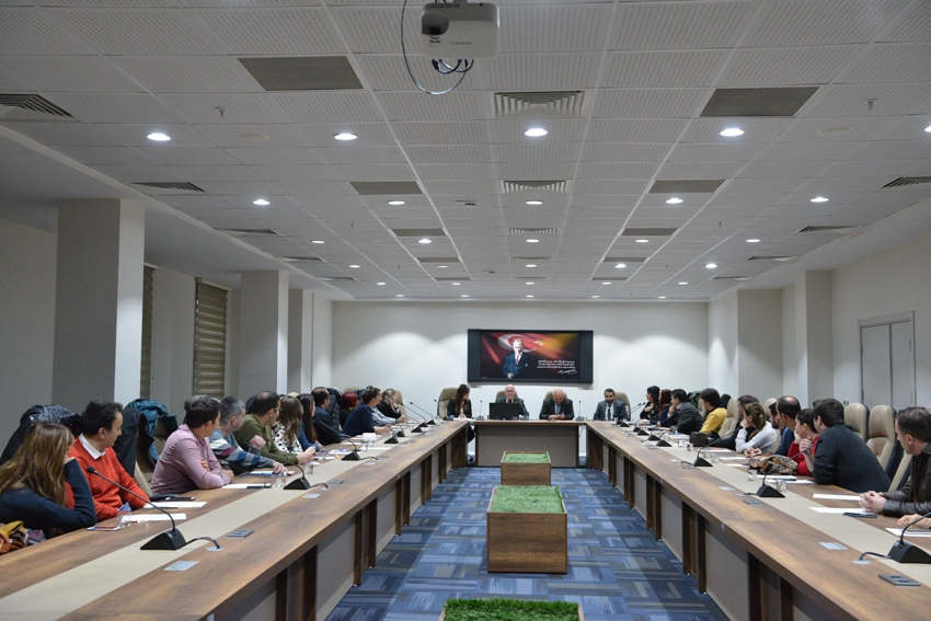 Dr. Öğr. Üyesi Özgür Tarhan, toplantıda yaptığı konuşmada personel hareketliliği hakkında bilgi vererek, soruları cevapladı.