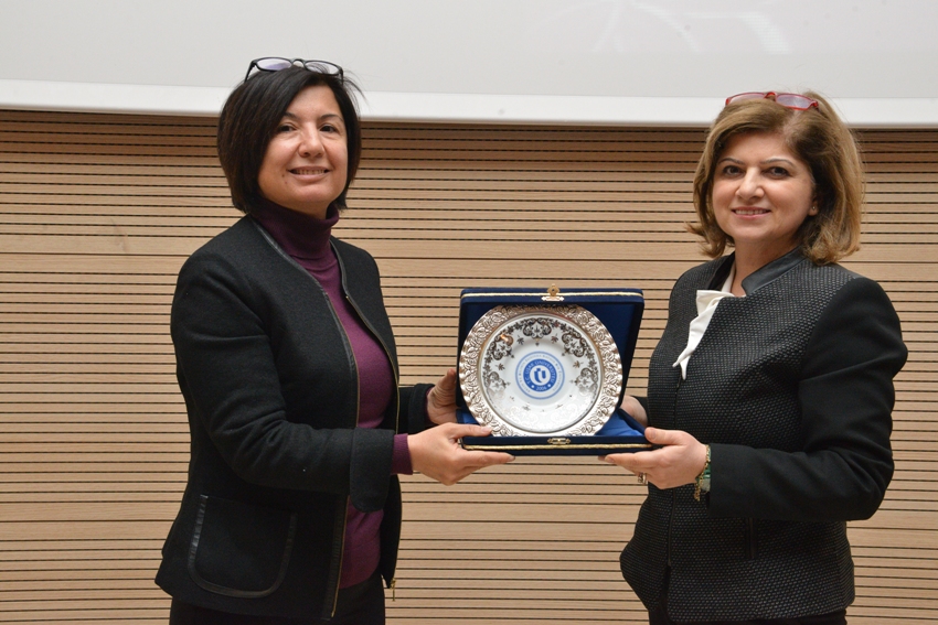 Ailenin Korunması ve Kadına Karşı Şiddetin Önlenmesine Dair Kanun hakkında ayrıntılı bir sunum yapan Av. Bitgin’e, konferansın sonunda Prof. Dr. Nuray Şahinler tarafından üniversite adına teşekkür plaketi verildi.