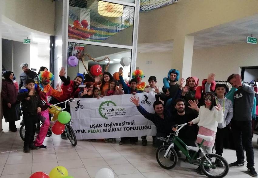 Uşak Üniversitesi Yeşil Pedal Bisiklet Topluluğu "Yeşil Bisiklet Projesi" kapsamında,sıfır veya kullanılabilir durumdaki kıyafet, atkı, bere, mont, gibi kışlık eşyaları ihtiyaç sahiplerine ulaştırıyor. Ayrıca proje kapsamında, evlerde ya da eskicilerde kullanılmayan bisikletleri toplayıp onaran topluluk, tekrardan kullanıma geçirdikleri bisikletleri ihtiyaç sahibi kişilere ücretsiz olarak dağıtıyor.