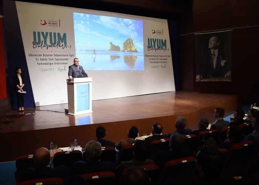 Antalya’da başlayan, Alanya, İzmir, Ankara, Gaziantep ve Bursa ile devam eden yabancıların hak ve yükümlülükleri hakkında bilgilerin aktarıldığı, "Uyum Buluşmaları" toplantılarının yedincisi Uşak'ta yapıldı.