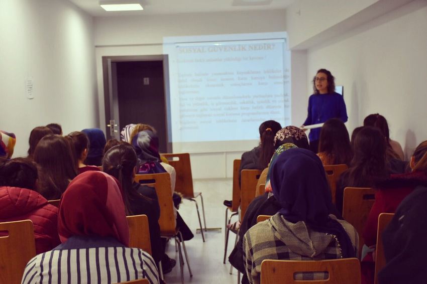 Üniversitemiz Adalet Meslek Yüksekokulu Öğretim Görevlisi Arzu Erdinç Ertürk, 5 Aralık 2017 tarihinde Yüksek Öğrenim Kredi ve Yurtlar Kurumu (KYK) Latife Hanım Kız Yurdu'nda "Toplumda Sosyal Güvenliğin Önemi ve Yeri" konulu bir konferans verdi.