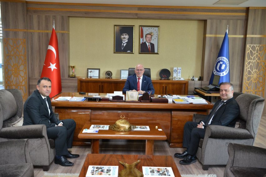 Türk Standartları Enstitüsü (TSE) Ege Bölge Müdürü Kürşat Yılmaz ve Uşak TSE Müdürü Özer Nas, Rektör Prof. Dr. Ekrem Savaş’ı makamında ziyaret etti.
