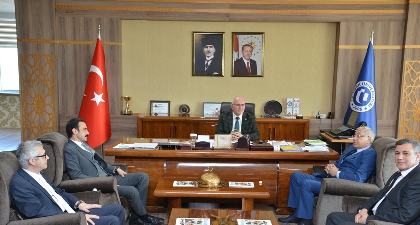 Milliyetçi Hareket Partisi (MHP) Uşak İl Başkanlığı görevine getirilen Ayhan Kınden ve beraberindeki heyet, Rektör Prof. Dr. Ekrem Savaş’ı makamında ziyaret etti.