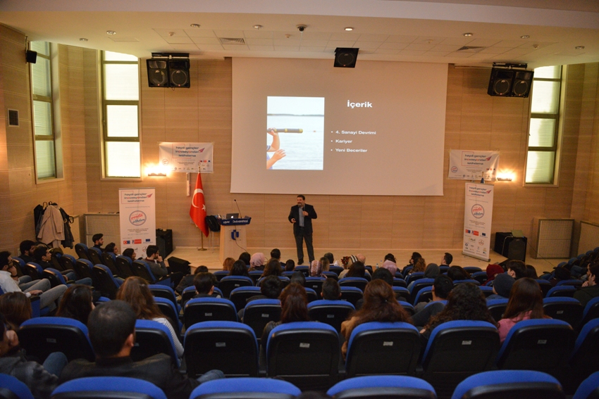Bilgilendirmenin ardından Doç. Dr. Efeoğlu, “Kariyer, Endüstri 4.0 ve İletişim” konularında sunum gerçekleştirdi. Tecrübe ve iş becerisinin iş hayatında büyük öneme sahip olduğunu belirten Efeoğlu, günümüzde mesleklerin gelişen teknolojiyle farklı bir boyut kazandığını, iş sahibi olmak isteyen mezunların sadece teknik bilgi değil aynı zamanda sosyal becerilerinin de olması gerektiğine dikkat çekti.