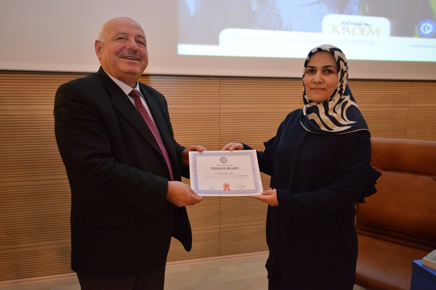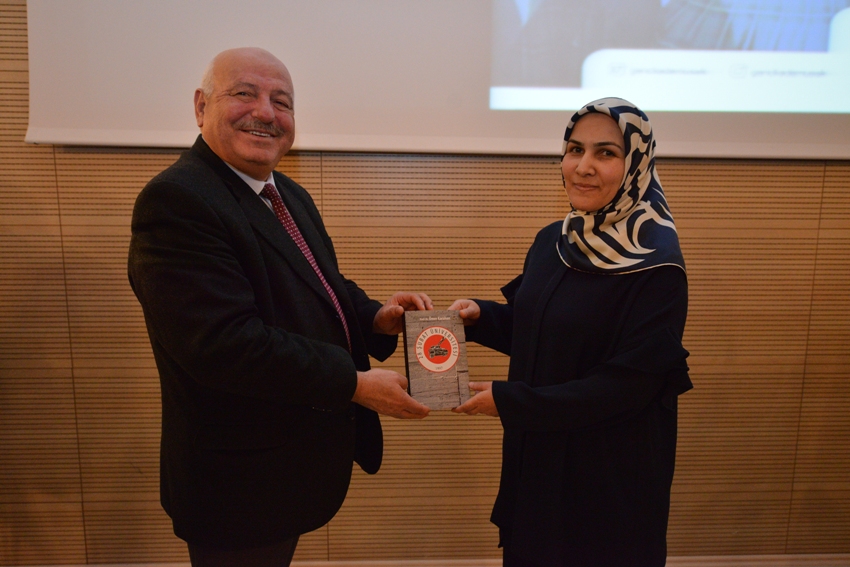 Panelin sonunda soruları cevaplayan İlyas ve Sabancı’ya Rektör Yardımcıları tarafından üniversite adına teşekkür belgesi ve plaket verildi. Prof. Dr. Karahan yazdığı “28 Şubat Üniversitesi” adlı kitabı hediye etti.