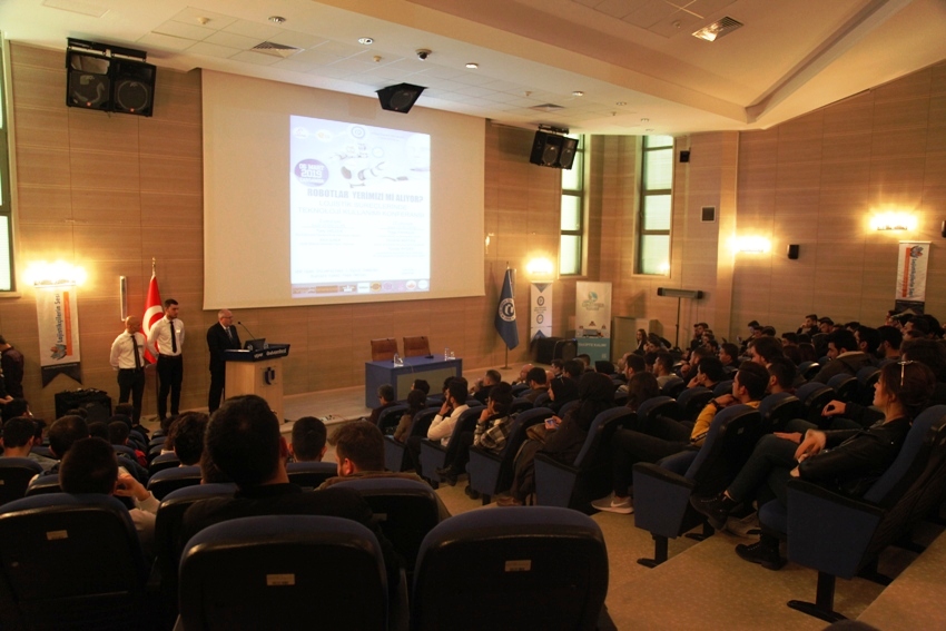 Uşak Üniversitesi İhracat ve Lojistik Topluluğu tarafından "Robotlar Yerimizi Mi Alıyor?" adlı konferans, Mustafa Kemal Paşa Amfisi’nde gerçekleştirildi.