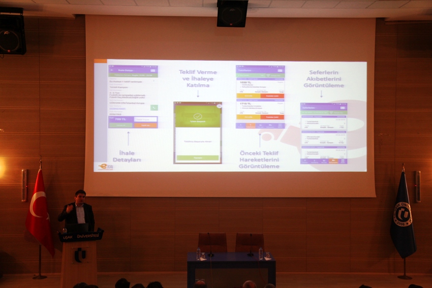 İlk oturumda Eta Elektronik Taşımacılık Operasyon Müdürü Tunç Selçuk, şirket çalışmaları ve iş modeli hakkında bilgi verdi. ÜÇGE-Robotik Sistemler Proje Yöneticisi Akın Saka, “Akıllı Depo ve Entegrasyon Süreçlerini” aktardı.