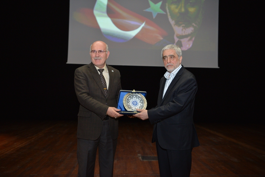 Konferansın sonunda Rektör Savaş, verdiği değerli bilgilerden dolayı Prof. Dr. Eş’e teşekkür ederek, plaket takdim etti.