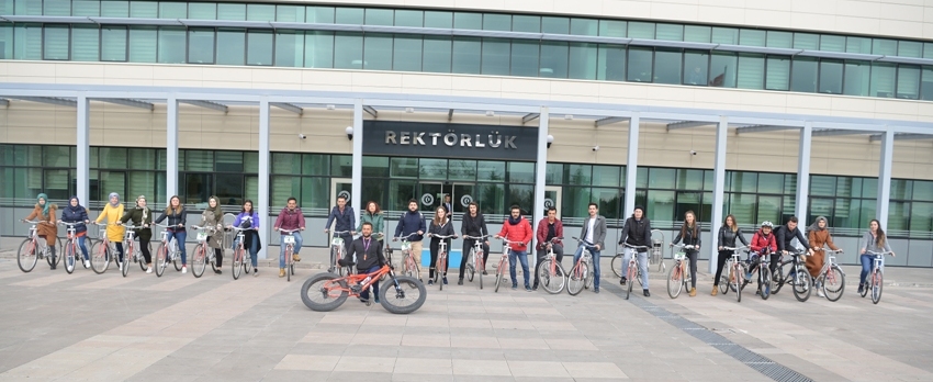 Rektörlük binası önünden başlayan bisiklet turuna katılan Rektör Prof. Dr. Ekrem Savaş, öğrencilere bu tarz etkinlikleri düzenlediklerinden dolayı tebrik etti.
