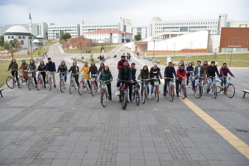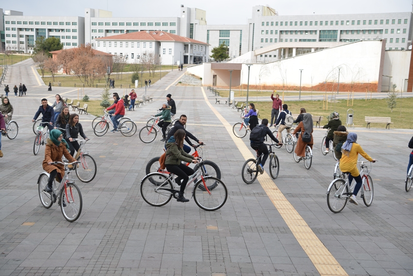 Öğrenciler, kampus içinde bisiklet kullandılar ve sağlıklı yaşam için farkındalık yaratmak amacında olduklarını söylediler.