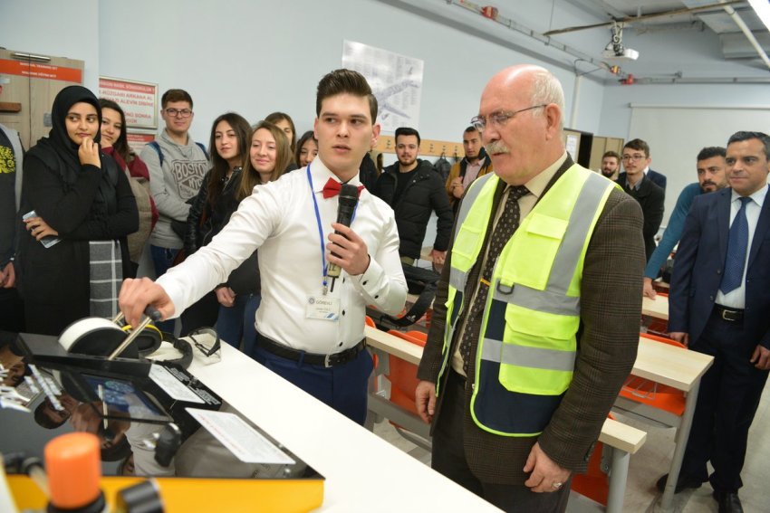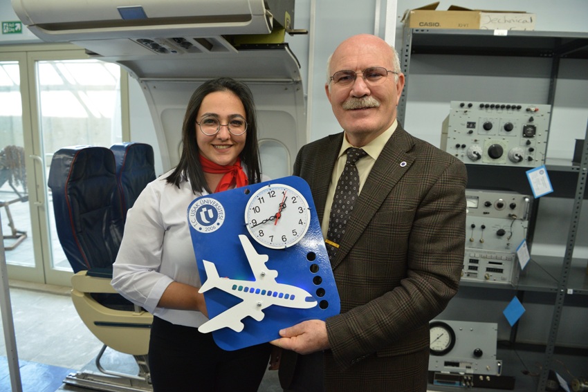 Prof. Dr. Savaş, görevli öğrencilerden atölye içerisinde bulunan, uçak iniş takımı, yangın algılama-önleme, ekipman ve çalışan guvernörlü pervane sistemleri hakkında bilgi aldı. Askeri alanda kullanılan F4 savaş uçaklarına ait bir parça incelendi. Atölye gezisi sırasında Öğretim Görevlisi Gökhan Yıldırım’ın tasarlığı saat öğrenciler tarafından Rektör Savaş’a hediye edildi.