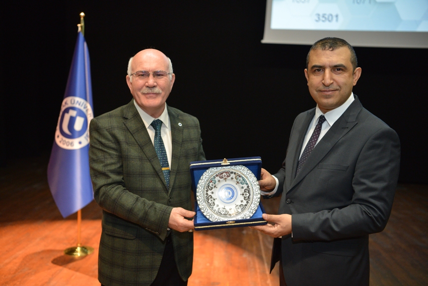 Program sonunda fizik, kimya, biyoloji ve matematik alanlarında TÜBİTAK Destek Programları kapsamında yapılan gözlemci panelist programlarına birer akademisyeni davet etme sözünü veren Arıcı’ya, Prof. Dr. Savaş üniversite adına plaket takdim etti.