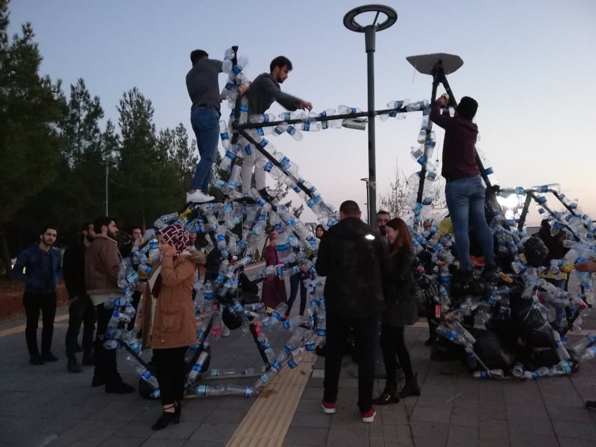 Topluluk Danışmanı Dr. Öğretim Üyesi Sevgi Tatar, “Türkiye’de bir ilk olan proje kapsamında topluluk öğrencileri ve gönüllü arkadaşlarımızla önce 4 metre yüksekliğinde demirden bir bisiklet yaptık. Bu bisikleti kampüs içinde gerçekleştirdiğimiz çöp toplama etkinliğinde biriktirdiğimiz atıklarla kapladık. Çöp bisikletimiz kampüs konser alanında sergileniyor. Daha yeşil bir dünya için, bizden sonraki nesillere daha temiz bir çevre bırakmak için topluluk olarak üstümüze düşeni yerine getirmeye hazırız. Projemizde bize destekleri olan başta Rektörümüz Prof. Dr. Ekrem Savaş olmak üzere, destek olan tüm öğrencilere ayrı ayrı teşekkür ediyoruz.”şeklinde konuştu.