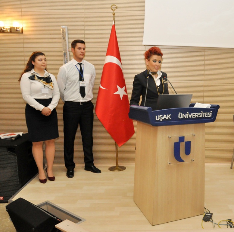 Açılış konuşmasının ardından Kabin Memuru Gamze Ceylan ve Uçak Bakım Teknisyeni Alişan Değirmenciler meslekleri ile ilgili bilgiler vererek deneyimlerini aktardılar.