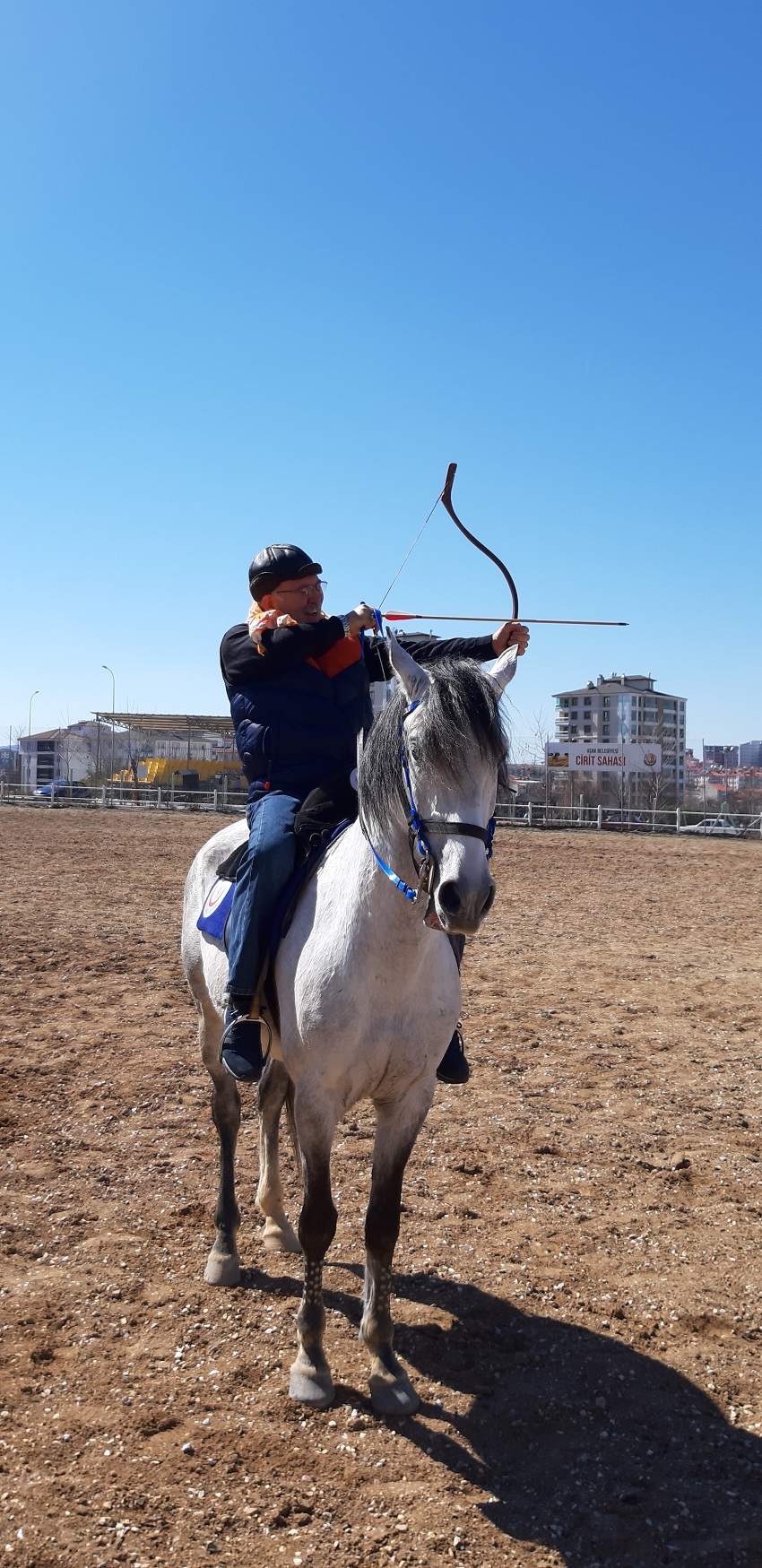 Uşak Üniversitesi Binicilik ve Cirit Topluluğu, Uşak Belediyesi Atlı Spor Bakım ve Rehabilitasyon Merkezi cirit alanında, cirit ve ok talimleri yapıyor.
