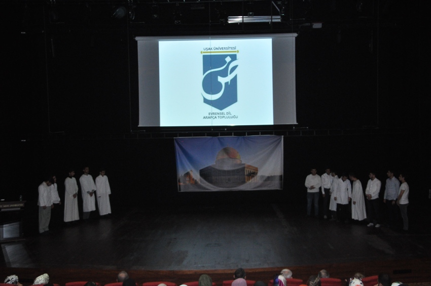 Uşak Üniversitesi Recep Tayyip Erdoğan Kongre ve Kültür Merkezinde yapılan etkinlik saygı duruşu, İstiklal Marşı’nın söylenmesi ve Kur’an-ı Kerim tilaveti ile başladı. Evrensel Dil Arapça Topluluğu tanıtım filminin izlenmesinin ardından İslami İlimler Fakültesi Dekanı Prof. Dr. Ali Yılmaz açılış konuşması yaptı. Açılış konuşmasının ardından Kudüs’ü tanıtan video gösterilerek Kudüs şiiri okundu. Etkinlik Kudüs konulu Arapça tiyatro oyununun gösterilmesinin ardından topluluk danışmanı Öğr. Gör. Halil İbrahim Kocabıyık’ın teşekkür konuşmasıyla sona erdi.