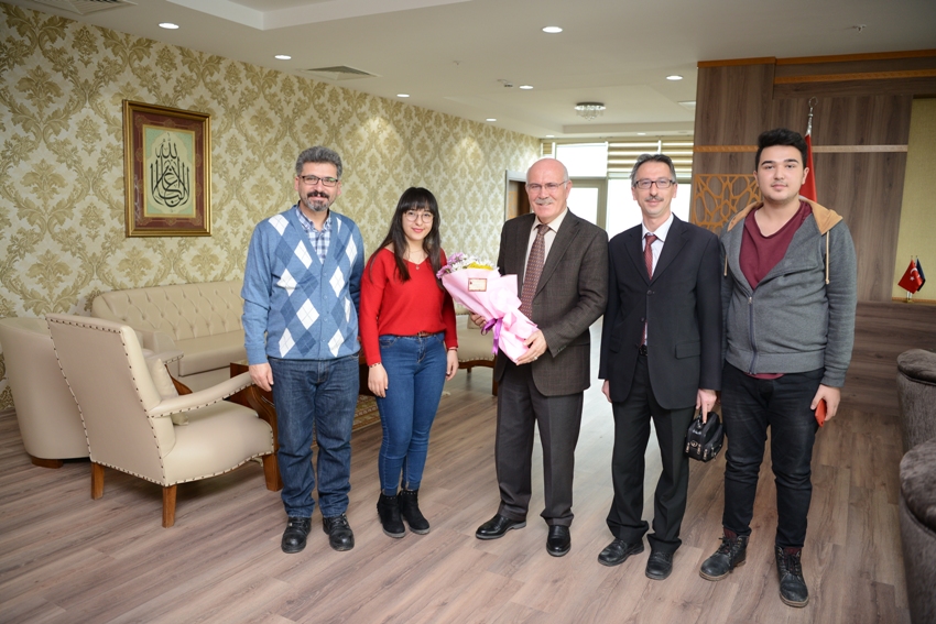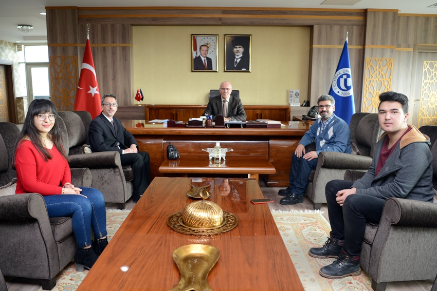 Uşak Atatürk Anadolu Lisesi Müdürü Yasin Savaş, Atatürk Anadolu Lisesi Felsefe Öğretmeni Hayati Güler ve 12. Sınıf öğrencileri Rektörümüz Prof. Dr. Ekrem Savaş’a hayırlı olsun ziyaretinde bulundular.