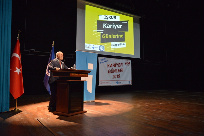 Rektör Savaş yaptığı konuşmada, nitelikli istihdamın önemine değinerek Uşak Üniversitesi olarak öğrencilerin öğrenim hayatları boyunca, çalışma alanlarında daha çok zaman geçirecekleri bir sistem kurduklarını belirtti. Prof. Dr. Savaş, “Öğrencilerimiz mezun olduklarında alanlarında daha deneyimli olacaklar. İşletmelerimiz de ihtiyaç duydukları nitelikli insan gücünü istihdam edecek. Uygulamalı eğitim, Mühendislik Fakültemizde 7+1 (yedi yarıyıl üniversitede, bir yarıyıl işletmelerde), Teknik Bilimler Meslek Yüksekokulumuzda da 3+1 şeklinde yapılıyor. Bu sistemi üniversitemizin tüm birimlerinde uygulanacak hale getirmek istiyoruz. Nitelikli mezun, nitelikli iş gücü demektir. İŞKUR, bugün üniversitemizde. Sizlere yol gösterecek bilgiler aktaracaklar. Faydalı olacağına yürekten inanıyorum. Sizlere tavsiyem, çok çalışın çünkü çalışmadan hedeflerinize ulaşamazsınız.” dedi.