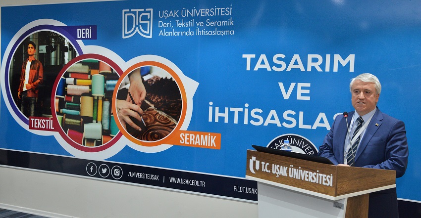Programın ilk oturumunda Prof. Dr. Savaş, Deri, Tekstil ve Seramik (DTS) alanlarında ihtisaslaşma için yürütülen çalışmaları ve projeleri anlatarak, Türkiye’de bir ilk olan Uşak Üniversitesi Tasarım Merkezi (UTAM) hakkında bilgi verdi. DTS çalışmalarındaki gelinen aşamaları, projeleri, hedefleri ve süreç içinde edindikleri tecrübeleri paylaştı. Rektör Savaş, DTS alanlarında, uluslararası rekabet ve gelecek için tasarımın önemine dikkat çektiği konuşmasında, bölge ve ülke kalkınmasında Uşak Üniversitesi’nin, “Tasarım Merkezi” olacağının altını çizdi.
