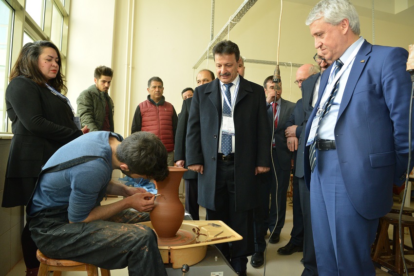 Sunumların ardından YÖK Yürütme Kurulu Üyesi Prof. Dr. Naci Gündoğan, üniversite rektörleri, rektör yardımcıları ve akademisyenler, Uşak Üniversitesi akademisyenleri tarafından hazırlanan ‘Senkron’ isimli sergiyi gezerek Uşak Üniversitesi DTS Tasarım Merkezi’ni ziyaret etti ve yetkililerden bilgi aldı. Heyet daha sonra, Güzel Sanatlar Fakültesi’nde bulunan resim, seramik ve moda tasarım atölyelerini gezerek, atölye çalışmalarına katıldılar.