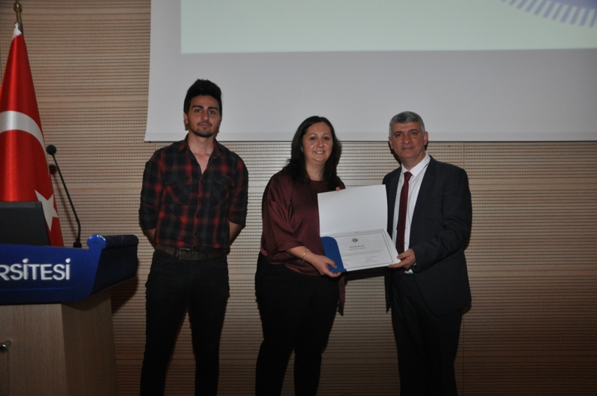 Program sonunda Yabancı Diller Yüksekokulu Müdürü Doç. Dr. Murat Hişmanoğlu ve Yabancı Diller Topluluğu Başkanı Bedri Mustafa, Öğr. Gör. Duygu Kacar’ a teşekkür belgesi verdi.