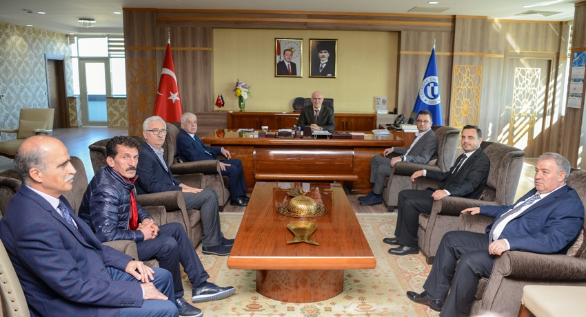 Rektörlük Makamında gerçekleşen ziyarette UTSO Yönetim Kurulu Başkanı Selim Kandemir, Rektörümüzü yeni görevinden dolayı kutlayarak hayırlı olsun temennisinde bulundular.