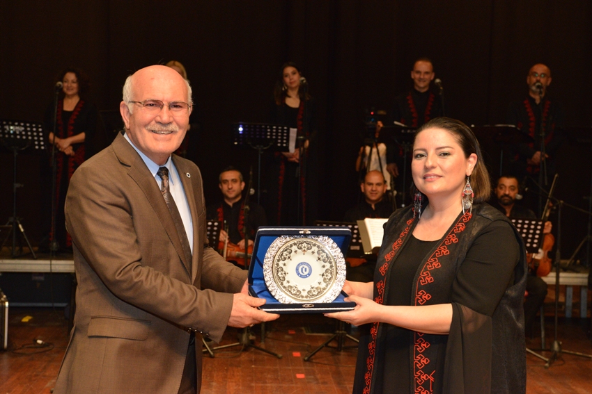 Rektör Prof.Dr. Savaş, konser sonunda Sanat Yönetmeni Şavk Kırçiçek’e teşekkür plaketi takdim etti.
