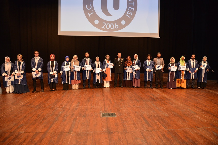 Gösterimin ardından, üstün onur belgesi almaya hak kazanan mezun öğrenciler adına, Uygulamalı Bilimler Yüksekokulu öğrencisi Simge Çekmen bir konuşma yaptı. Çekmen, 'Aklın ve Bilimin Işığında Yeni Nesil’ bir üniversiteden mezun olan öğrenciler olarak vatan ve millet aşkıyla ülkemize hizmet edeceklerini söyleyerek üniversite hayatları boyunca huzurlu ve güvenli şekilde öğrenim görmelerini sağlayan, başta Üniversite yönetimine ve hocalarına, İl bürokratlarına, bugünlere gelmelerinde emek ve desteklerini hiçbir zaman esirgemeyen ailelerine ve aynı dereceyle mezun olan Sağlık Yüksekokulu öğrencisi Mine Erginli’ye teşekkür etti.