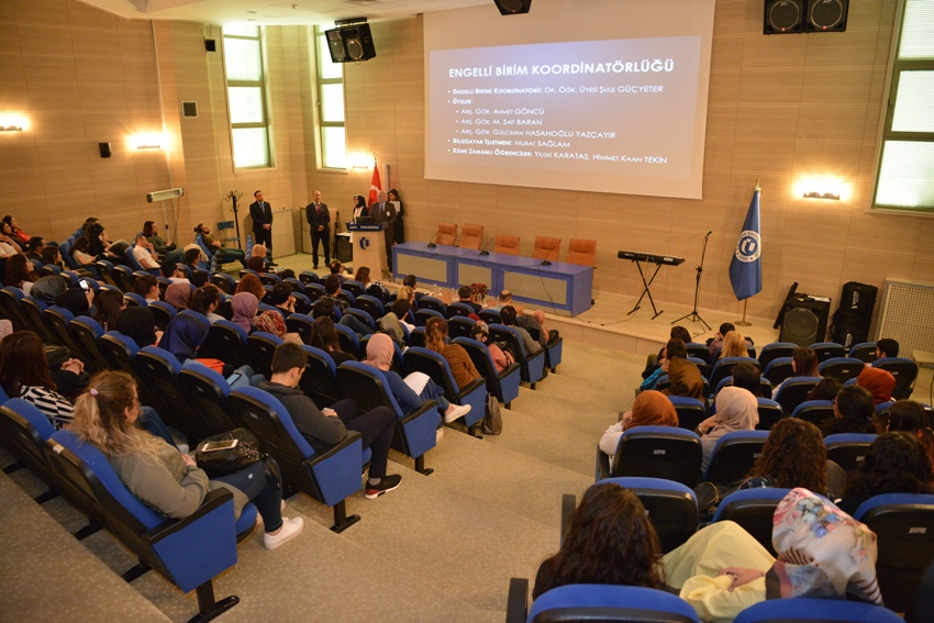 Engelli Birim Koordinatörü Dr. Güçyeter, Engelliler Farkındalık Haftası kapsamında yaptıkları etkinlikler hakkında bilgi vererek, “Özünde her birey özgür, bağımsız yaşam ve üreterek kendine ve topluma faydalı olmayı ister. Bu nedenle sadece normal gelişim gösteren kişilerin değil, herhangi bir nedenle özel gereksinimli hale gelmiş bireylerin de yaşama, eğitime ve iş hayatına etkin katılım hakkı vardır.’’dedi.