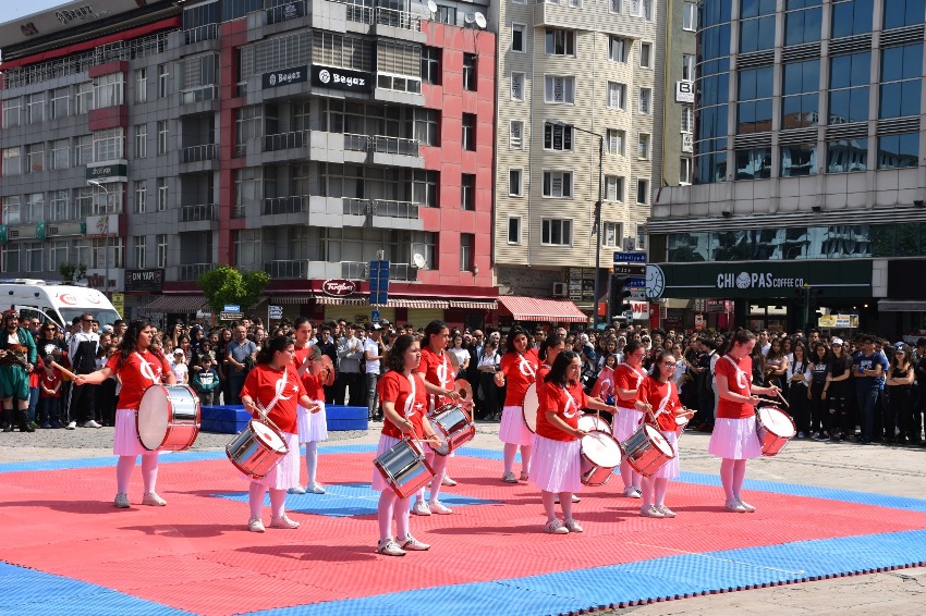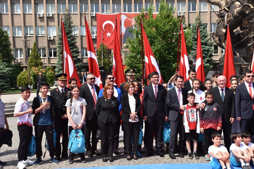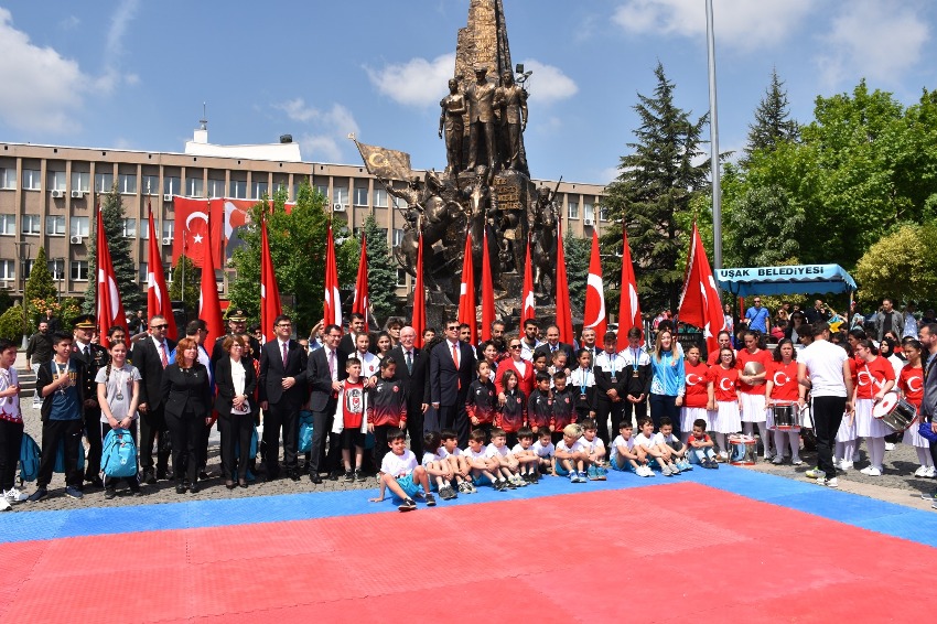 Uşak Gençlik Hizmetleri ve Spor İl Müdürü Tahir Emre Can'ın, Atatürk Anıtı'na çelenk koymasıyla başlayan törenin ardından Vali Funda Kocabıyık, meydanda bulunan gençlerin ve protokolün bayramını kutladı. Törende konuşan Can, 19 Mayıs'ın önemine değinerek, 100 yıl önce bugün Türkiye Cumhuriyeti'nin temellerinin atıldığını söyledi. Yapılan protokol konuşmaları, şiir dinletisinin ardından kutlama programına, jimnastik, karate, tekvando eskrim ve halk oyunları gösterileri ile devam edildi. Yarışmalarda dereceye giren sporculara ödülleri verildi.