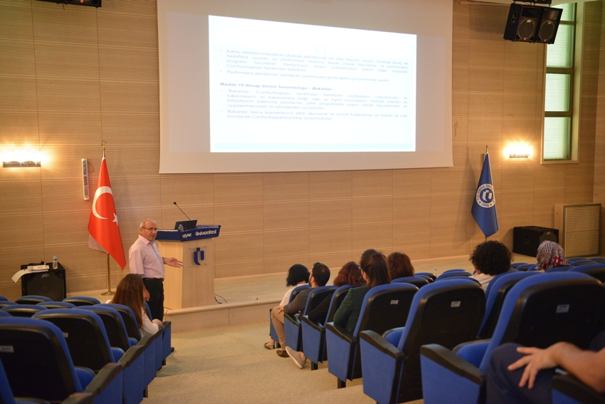 Hizmet İçi Eğitim Şubesi tarafından Mustafa Kemal Paşa Amfisinde düzenlenen eğitime Strateji Geliştirme Daire Başkanı Mesut Çetinkaya konuşmacı olarak katıldı.