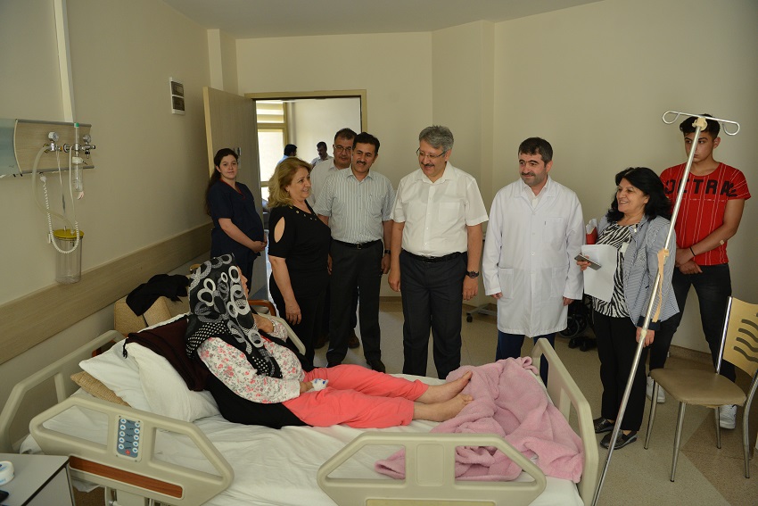 Karşılıklı fikir alışverişinin ardından hastane birimlerini de gezen Dekan Prof. Dr. Semiz, personel ile tanışarak hastalarla sohbet etti.