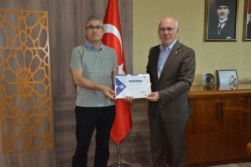 Uşak Üniversitesi Rektörü Prof. Dr. Ekrem Savaş, görevini başarıyla ifa eden Doç. Dr. Özen’e teşekkür belgesi takdim ederek, bugüne kadar yaptığı çalışmalardan dolayı teşekkür etti.