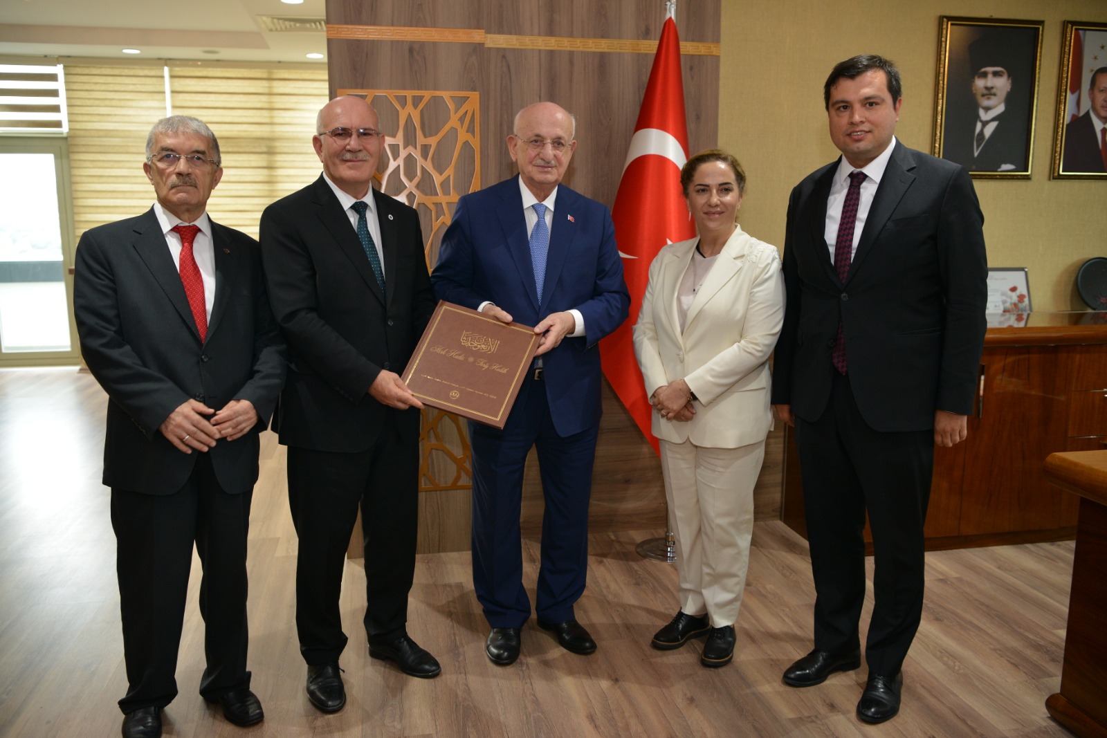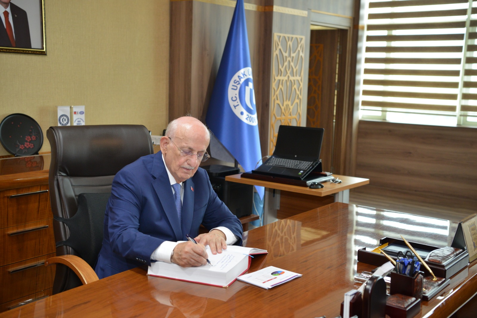 Program sonunda Uşak Üniversitesi Rektörü Prof. Dr. Ekrem Savaş, İsmail Kahraman’a teşekkür plaketi takdim etti. Deri Tekstil ve Seramik (DTS) Tasarım Uygulama ve Araştırma Merkezinde incelemelerde bulunan Kahraman, Rektörlük makamını ziyaret etti. Ziyarette Kahraman üniversite şeref defterini imzalayarak, Uşak Üniversitesi hakkında Rektör Prof. Dr. Ekrem Savaş’tan bilgi aldı.