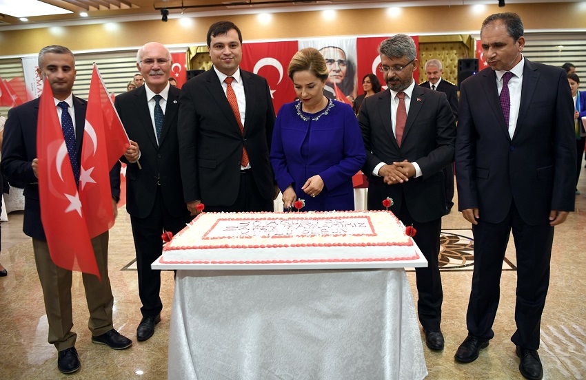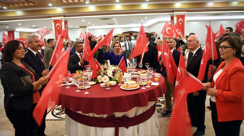 Atatürk Anıtı’na Çelenklerin sunulmasıyla başlayan kutlama programı Vali Funda Kocabıyık'ın makamında tebrikleri kabulüyle devam etti. Kabulün ardından kutlama programı 15 Temmuz Şehitler Meydanı’nda devam etti. Meydanda düzenlenen kutlama törenine Vali Funda Kocabıyık, Uşak Milletvekilleri Mehmet Altay ve İsmail Güneş, Belediye Başkanı Mehmet Çakın, Uşak Üniversitesi Rektörü Prof. Dr. Ekrem Savaş, İl protokolü, daire müdürleri, okul müdürleri ve vatandaşlar katıldı. Saygı Duruşu’nun ardından İstiklal Marşı’nın okunmasıyla başlayan tören günün anlam ve önemini belirten konuşmalarla, şiirlerin okunması ile devam edip halk oyunları gösterileriyle sona erdi. Kutlama töreninin sonunda Vali Funda Kocabıyık ve protokol üyeleri, Uşak'taki kutlama programına katılmak üzere Uşak'a gelen Bornova Jandarma Komando Tugayı askerleriyle hatıra fotoğrafı çektirdi.