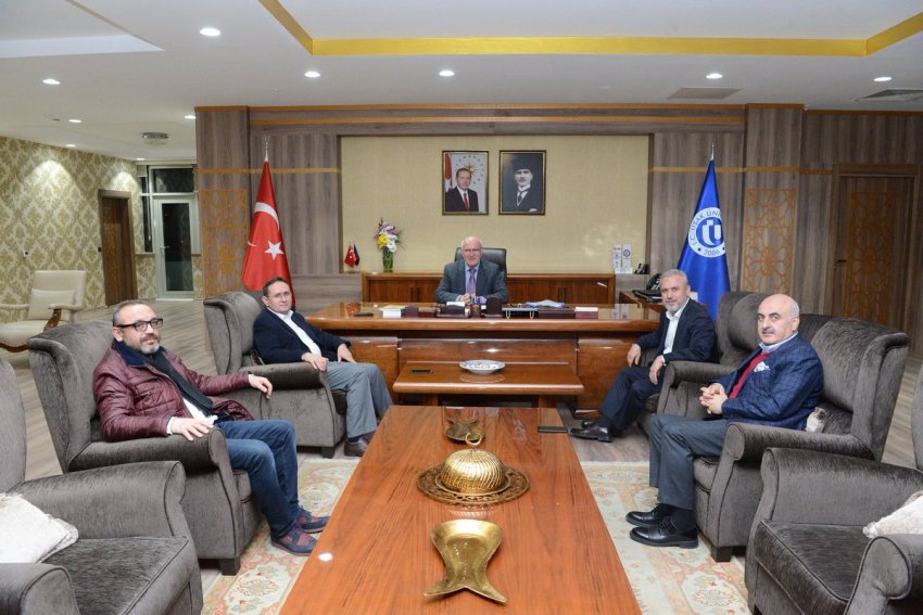 Rektörlük Makamında gerçekleşen ziyarette Nuri Uslu, Osman Duru, Şerafettin Hamidi ve Levent Uslu, Rektörümüzü yeni görevinden dolayı tebrik ederek, hayırlı olsun temennisinde bulundular.