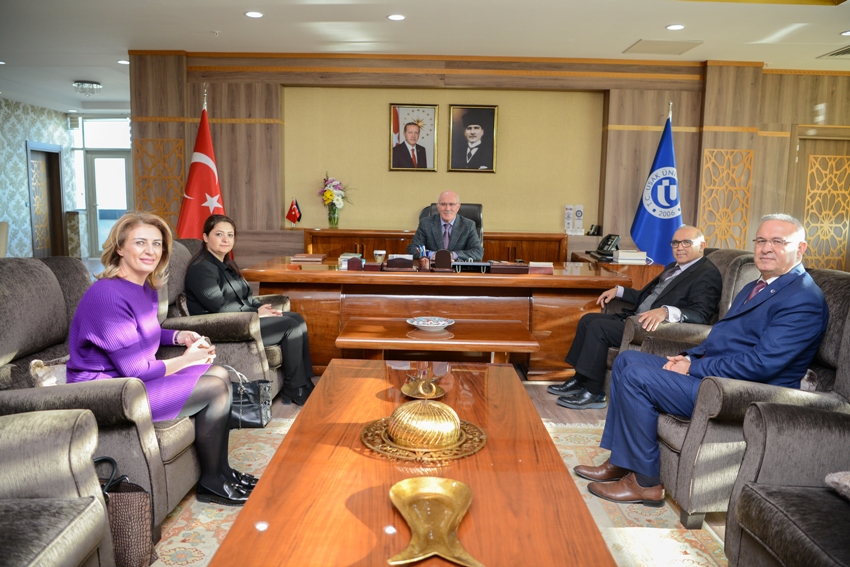 Rektörlük Makamında gerçekleşen ziyarette Kanyon Koleji Kurucusu Prof. Dr. Servet Rüştü Karahan, Kanyon Koleji Lise Müdürü Recai Uğur, Kanyon Koleji İlköğretim Müdürü Tuğba Süren Adatepe, Rektörümüzü yeni görevinden dolayı kutlayarak hayırlı olsun temennisinde bulundular.