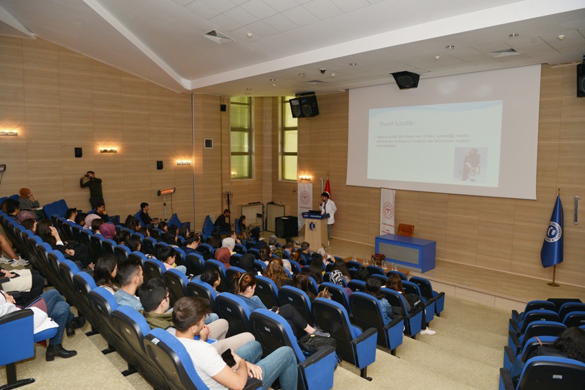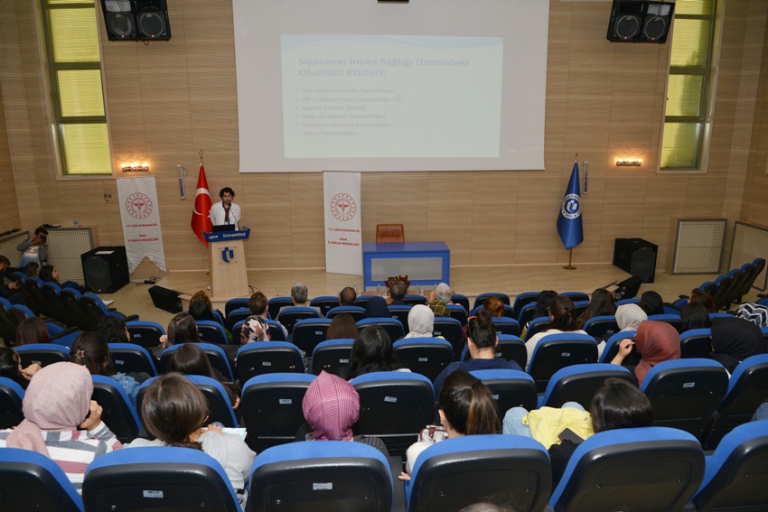 Uşak İl Sağlık Müdürlüğü Tütün ve Diğer Bağımlılık Yapıcı Maddelerle Mücadele Birimi tarafından, üniversitemiz personeli ve öğrencilerine yönelik "Sigara ve Madde Bağımlılığı” konulu eğitim verildi.