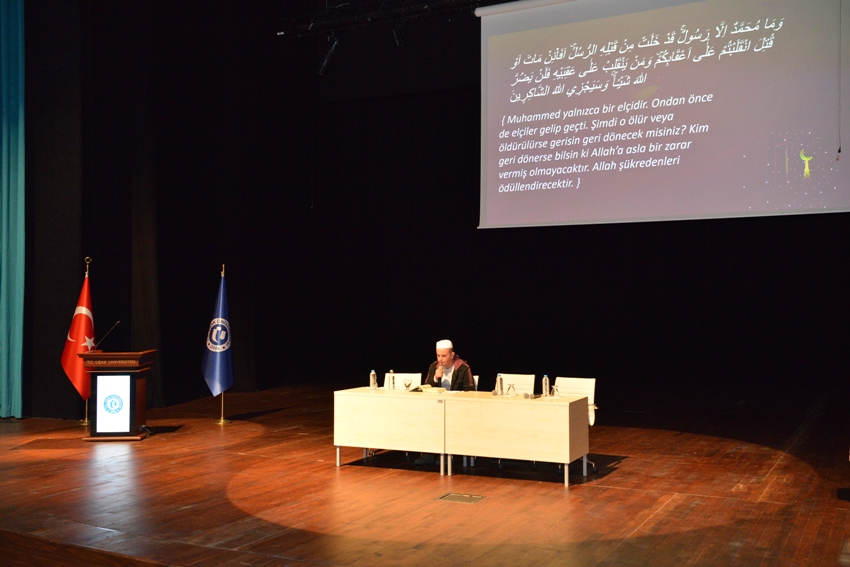 Saygı duruşu ve İstiklal Marşı’nın okunmasının ardından Uşak Üniversitesi İslami İlimler Fakültesi öğrencisi Melih Çetinkaya’nın Kuran-ı Kerim’in Al-i İmran Suresi’ni okumasıyla başlayan program, Yaşayan Fikirler Öğrenci Topluluğu Danışman Öğretim Üyesi Dr. Hikmet Gültekin’in konuşmasıyla devam etti. Gültekin konuşmasında, programa yoğun katılım gösteren öğrencilere teşekkür etti.