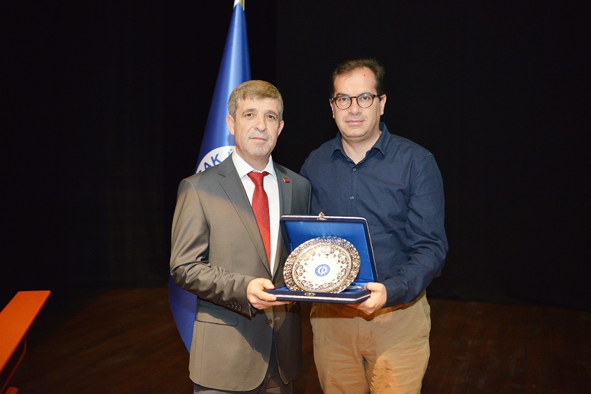 Konferansın sonunda İletişim Fakültesi Dekanı Prof. Dr. Öntuğ, Prof. Dr. Altıntaş’a aktardığı bilgilerden dolayı teşekkür ederek, üniversitemiz adına plaket takdim etti.